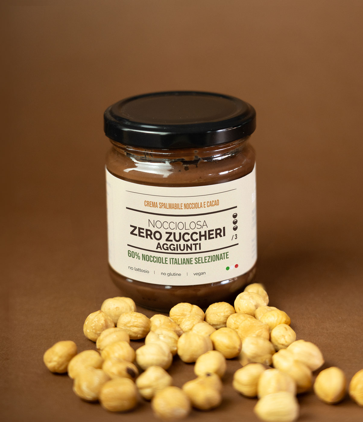 Una scelta per chi cerca l’intensità del sapore senza compromessi: questa crema spalmabile con il 60% di nocciole è senza zuccheri aggiunti. Sfruttiamo l’eritritolo, un poliolo di origine naturale, per un sapore dolce delicatamente bilanciato, privo degli impatti glicemici dello zucchero. La lista ingredienti è corta e la lavorazione a basse temperature massimizza la conservazione delle proprietà benefiche della nocciola. Un’opzione naturalmente senza glutine e senza lattosio, ideale per una dolcezza naturale e consapevole.