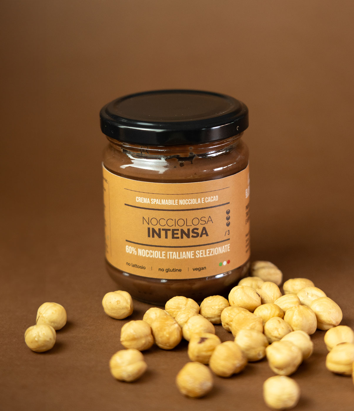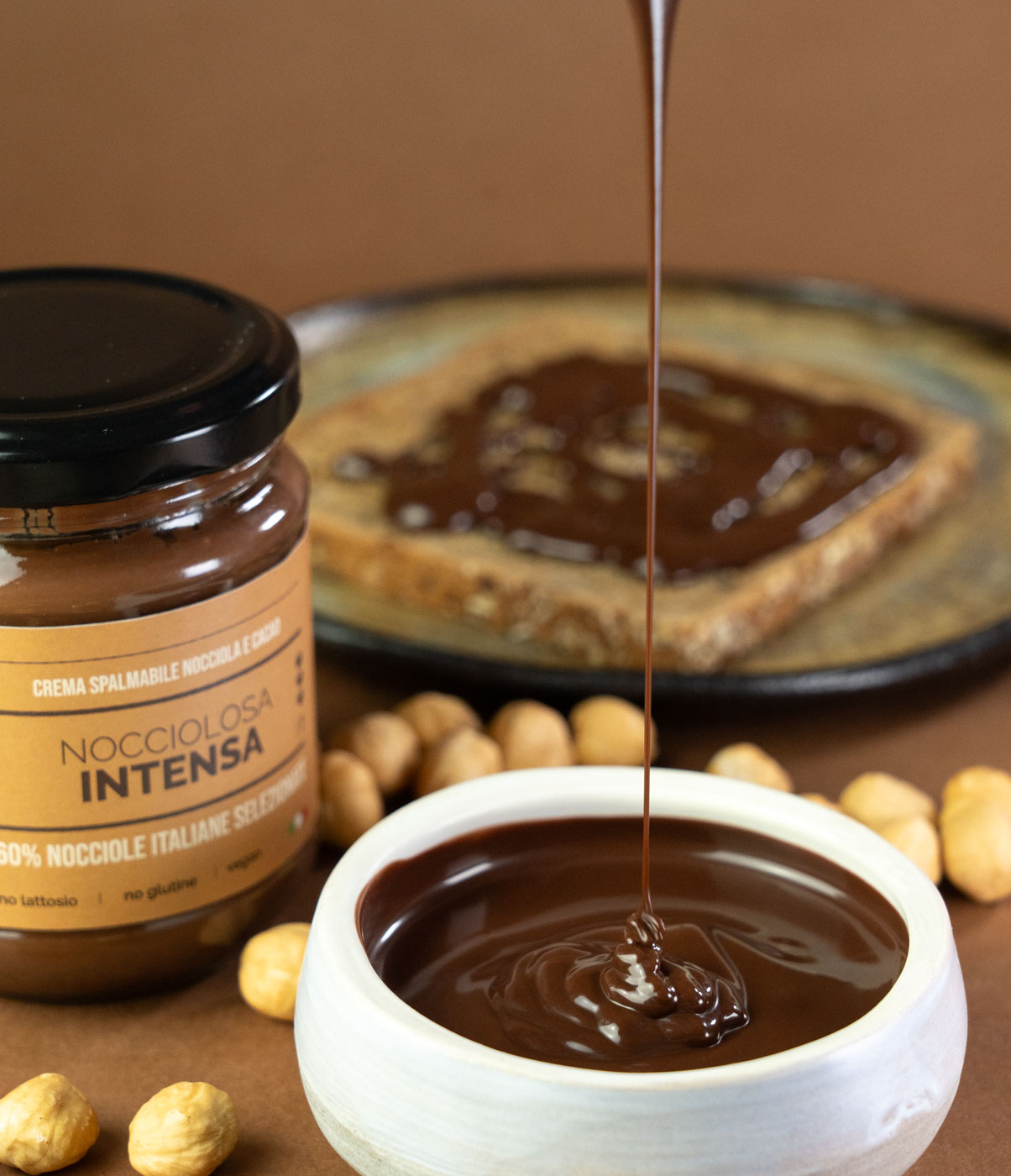 Una spalmabile con ben il 60% di nocciole, di fatto tra le più alte concentrazioni nel mercato. Vengono utilizzati pochissimi ingredienti (nocciole, zucchero, cacao), ridefinendo il concetto di qualità nelle creme spalmabili. Naturalmente senza lattosio e glutine. La lavorazione a basse temperature mira a preservare intatto il gusto e le proprietà della nocciola, in linea con l’attuale considerazione della nocciola come alimento salutare.
