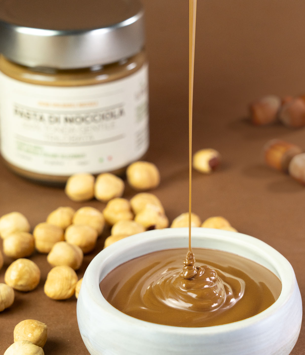 La pasta pura di nocciola è l’ingrediente essenziale per un’alimentazione sana e senza compromessi. Realizzata con il 100% di nocciole tostate e finemente macinate a basse temperature, garantisce la massima espressione delle caratteristiche organolettiche e del sapore autentico. Senza alcun altro ingrediente, additivo o zucchero aggiunto, è la base ideale per la tuancolazione, uno snack o per gli utilizzi più disparati nelle ricette.